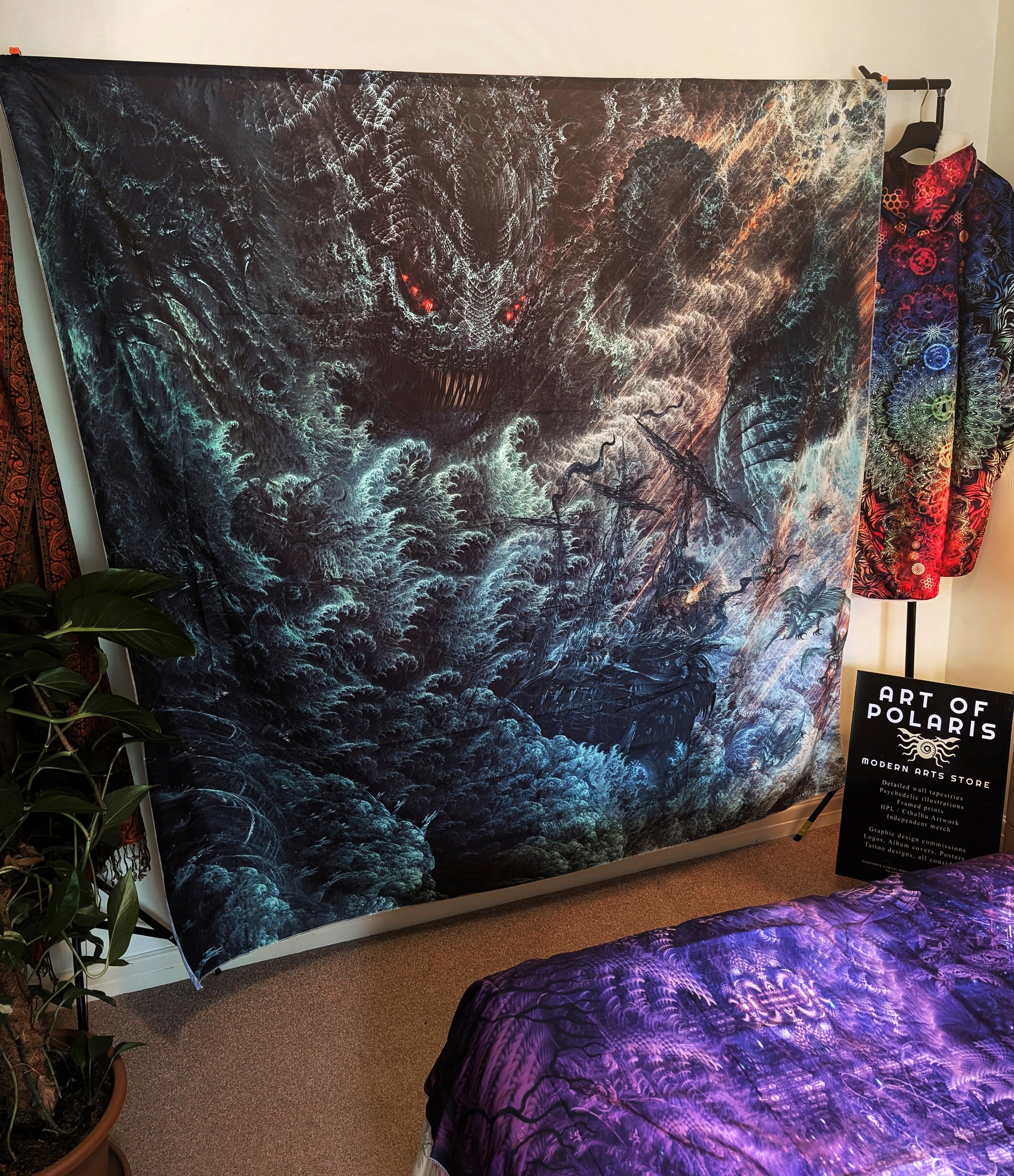 'Fractal Dagon' Wall tapestry / Bed throw.